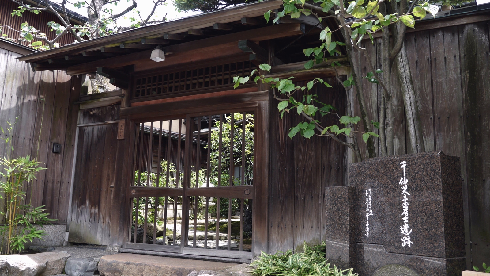 ここは、万治二年(1659)五代藩主前田綱紀公が京都から茶道奉行として金沢に招かれた裏千家四代仙叟宗室居士の屋敷跡地である。平成八年、仙叟居士三百年忌において十五代千玄宗大宗匠の記念碑が建てられている。