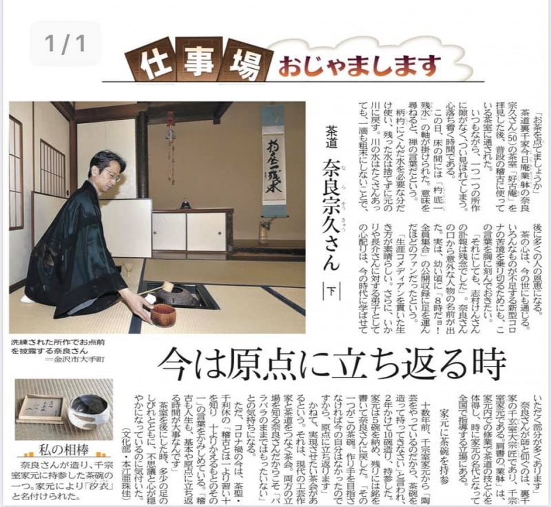毎年、石川県の各小学校に向けての親子の茶会を体験していただいていた...